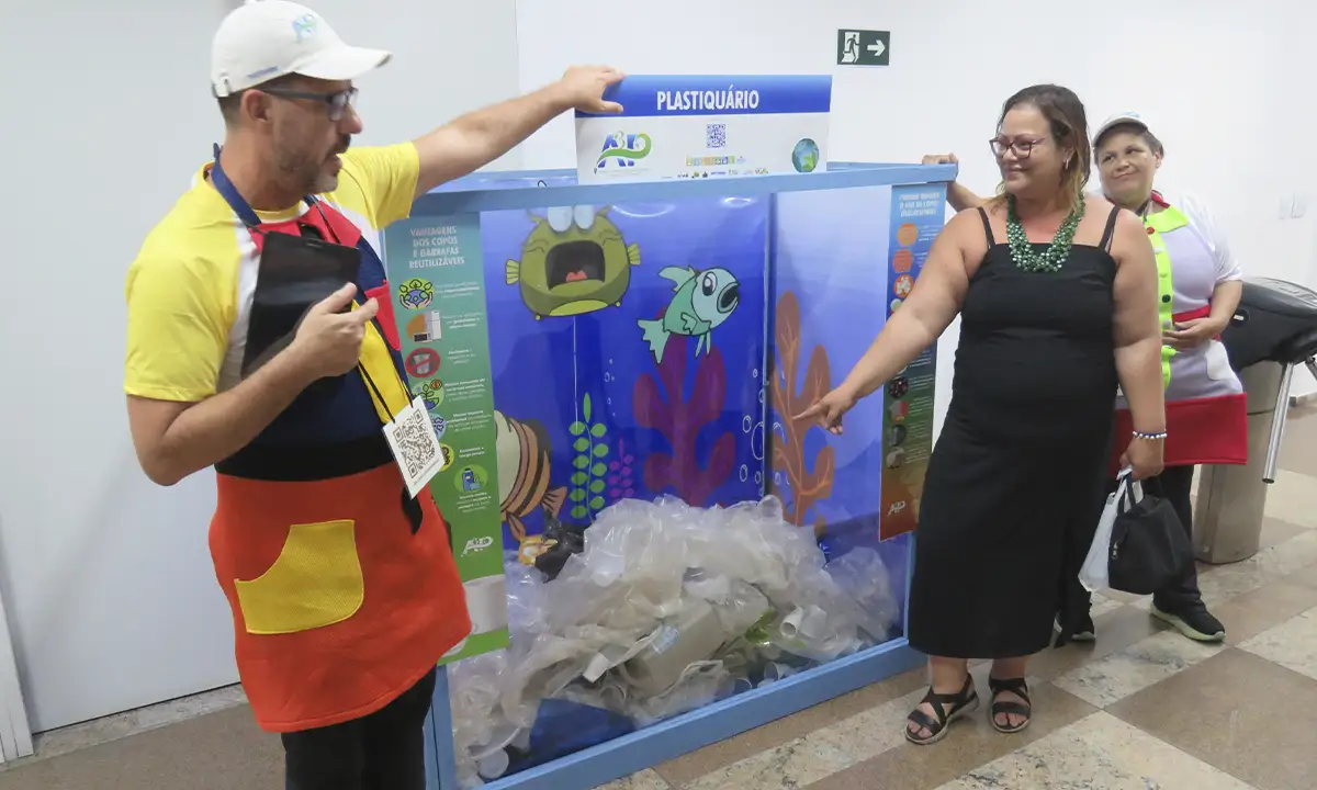No plastiquário, estrutura em formato de aquário, os funcionários da administração direta e indireta puderam descartar os resíduos que foram produzidos em apenas uma semana.