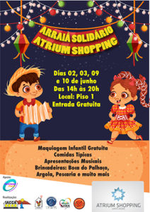 Nos próximos finais de semana de junho (dias 2, 3,9 e 10, das 14h às 20h) o Atrium Shopping, em Santo André, realiza o “Arraiá Solidário”. A festa junina, ambientada no Piso 1, contará com barracas geridas por entidades beneficentes da região do ABC e atrações para todas as idades.