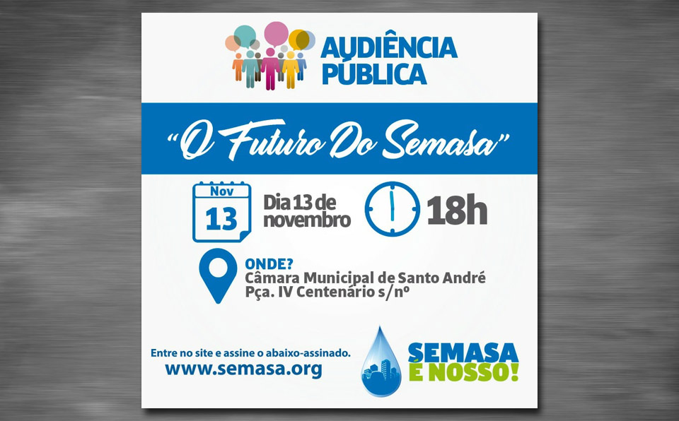 Segundo informativo do movimento, o Semasa – Serviço Municipal de Saneamento Ambiental de Santo André – é uma autarquia municipal, um prestador de serviço 100% público. Uma empresa construída durante décadas de trabalho e investimento público, patrimônio do povo de Santo André.