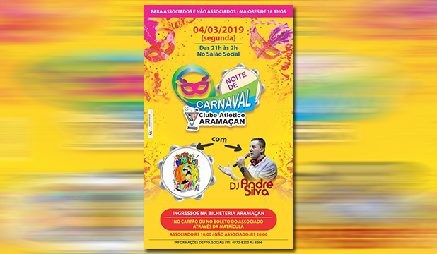 O Clube Atlético Aramaçan receberá os foliões adultos e infantis para a tradicional festa de Carnaval.
