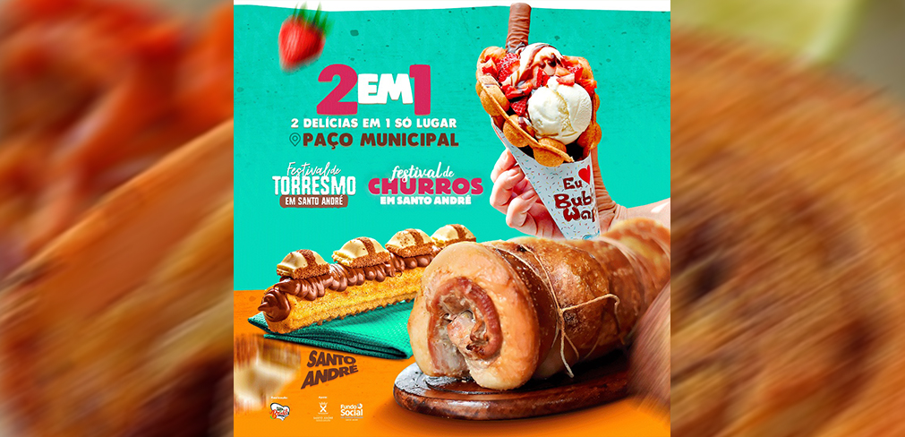 Neste final de semana, dias 8 e 9 de fevereiro, o Paço Municipal de Santo André recebe dois festivais gastronômicos de uma vez, com diversas opções de culinária suína e churros. O evento, organizado pela Sabor do Brasil, acontecerá das 12h às 22h, ao lado do espelho d’água.