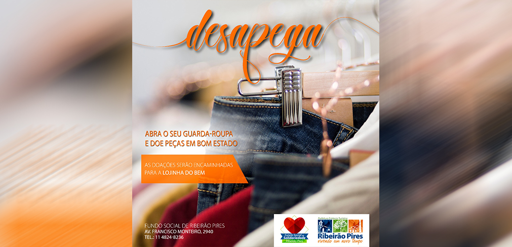 O Fundo Social de Ribeirão Pires lançou nessa semana a campanha “Desapega”. Na ação solidária, moradores poderão contribuir com a doação de roupas em bom estado. As peças serão utilizadas no projeto social da Lojinha do Bem, sediada na entidade municipal.