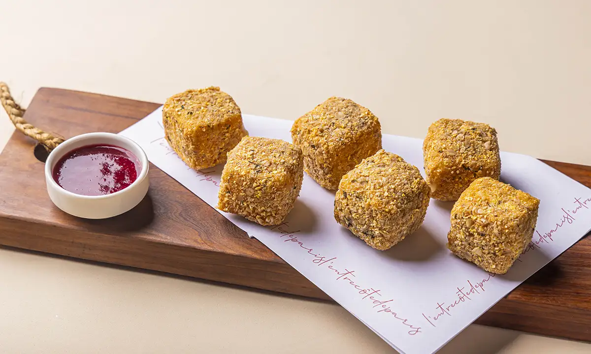 Preparado com queijo brie empanado com ervas, o Fromage Doré é servido dourado no ponto certo, garantindo uma casquinha extremamente crocante por fora e um interior surpreendentemente cremoso e envolvente. Para finalizar, o prato é acompanhado por uma geleia de frutas vermelhas, que adiciona frescor e um delicado contraste agridoce ao petisco.
