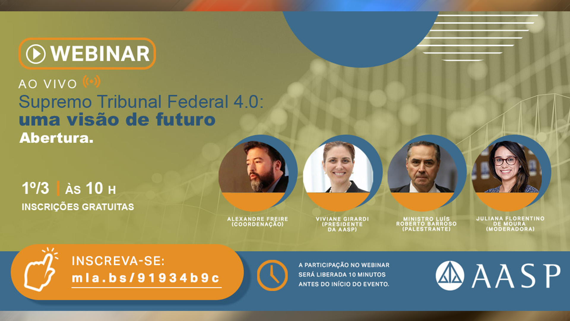 O ministro Luís Roberto Barroso, do STF, participa da abertura do evento no dia 1º, às 10 horas. A coordenação do webinar é do Secretário da Secretaria de Altos Estudos, Pesquisas Jurídicas e Gestão da Informação do STF, Alexandre Freire. “O evento pretende apresentar reflexões sobre as novas tendências do Supremo Tribunal Federal como, por exemplo, os julgamentos virtuais, o papel da conciliação e da mediação, a redefinição do STF como uma Corte de precedentes e não um tribunal de causas, além das iniciativas de modernização por meio da implementação do laboratório de inovação, entre outras. O ponto alto do evento será a mensagem de futuro da Corte a partir de uma reflexão do ministro Luís Roberto Barroso”, afirma o coordenador do webinar, Alexandre Freire.