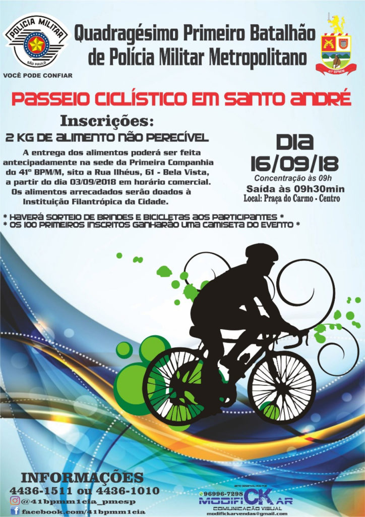 No dia 16 de setembro ocorrerá em Santo André um Passeio Ciclístico organizado pelo 41º BPM/M (Quadragésimo Primeiro Batalhão de Polícia Militar.
