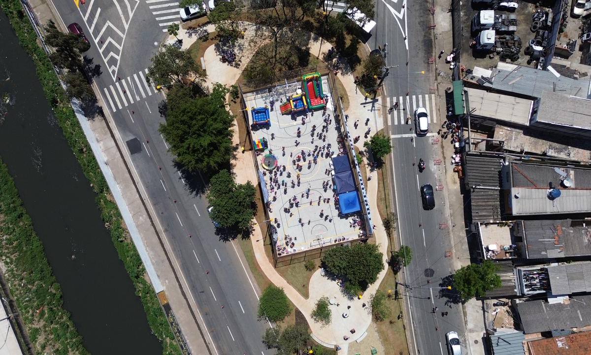 Depois de alguns meses de reforma, o espaço, antes alvo de descarte irregular de resíduos e invasão, agora conta com uma quadra poliesportiva totalmente modernizada, área de convivência com mesa e bancos, pista de caminhada, academia ao ar livre, lixeira e paisagismo, com árvores e arbustos.