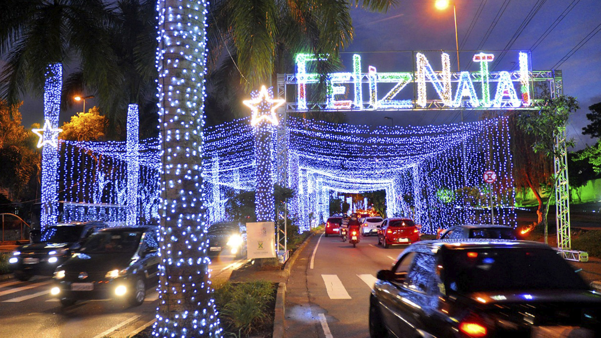 Foram colocadas cerca de 450 mil lâmpadas ao longo da via, com túneis nos dois sentidos, além de um urso iluminado, símbolo do Fundo Social, com três metros de altura.