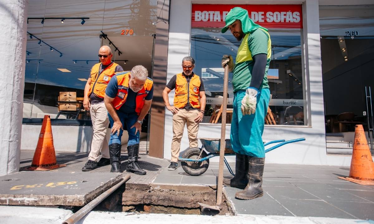 Equipes da Secretaria de Serviços Urbanos e Defesa Civil se juntam para cuidar de equipamentos em trechos das ruas Jurubatuba, Faria Lima e Marechal Deodoro