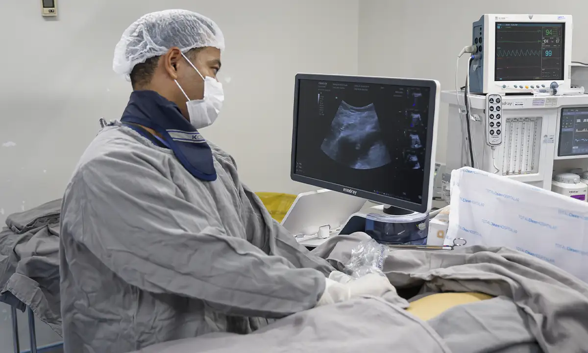 A intervenção exigiu esforço multidisciplinar que envolveu suporte clínico, oncológico, cirúrgico e radiológico, com métodos avançados de imagem, como ultrassonografia e fluoroscopia por raio-X. Foi efetuada a micropunção de um ramo biliar intra-hepático, seguida da navegação seletiva até vias biliares de maior calibre. A partir daí, foi realizada a transposição da obstrução tumoral e colocado o dreno para permitir o escoamento adequado da bile represada.