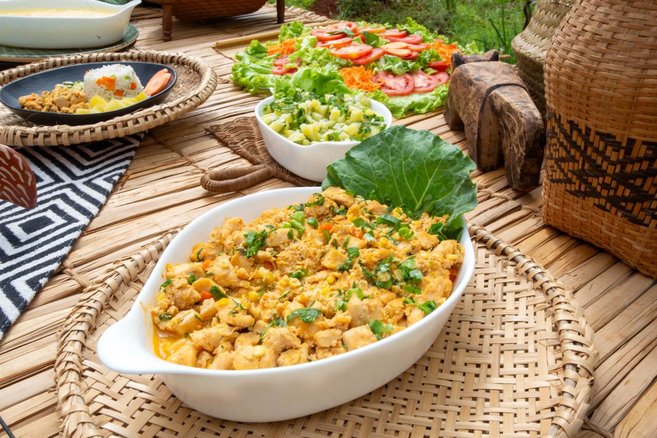 Sabrina reforça que o aproveitamento integral foi central no processo. “Utilizamos cascas no cozimento do feijão para fazer um caldo batido e também nas carnes. Sempre fomos orientadas pela nutricionista a evitar desperdício, utilizando os insumos de maneira integral.” As pesquisas para desenvolvimento da receita foram realizadas por meio do material “Receitas Culinárias Indígenas Guarani-Kaiowá e Terena na Escola 2023”, disponibilizado pela professora de sociologia da escola, Tainá Oitis, que também  é pesquisadora de cultura indígena.