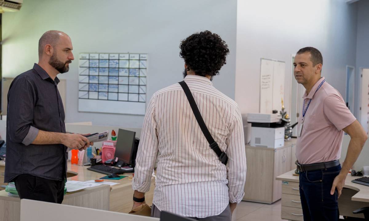 Nesta visita, o auditor foi acompanhado por Marcelo Cândido, da Sejur (Secretaria de Assuntos Jurídicos), e Sílvio Vera, do DTI (Departamento de Tecnologia da Informação), órgão responsável pela gestão dos contratos de computadores, notebooks e e-mails corporativos da Prefeitura.